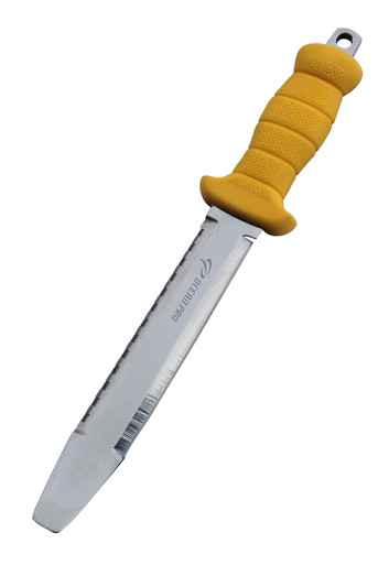 The versatile Abalone Tool features a rope cutter and axe edge as well as a blunt tip